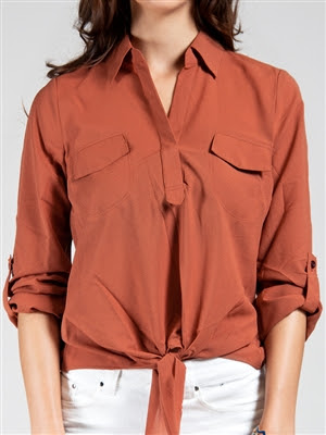 Call On Her Blouse: Love this rust color. You can cuff the sleeves up or roll them down and there's a tie in front. This is a perfect top to either dress up or down.