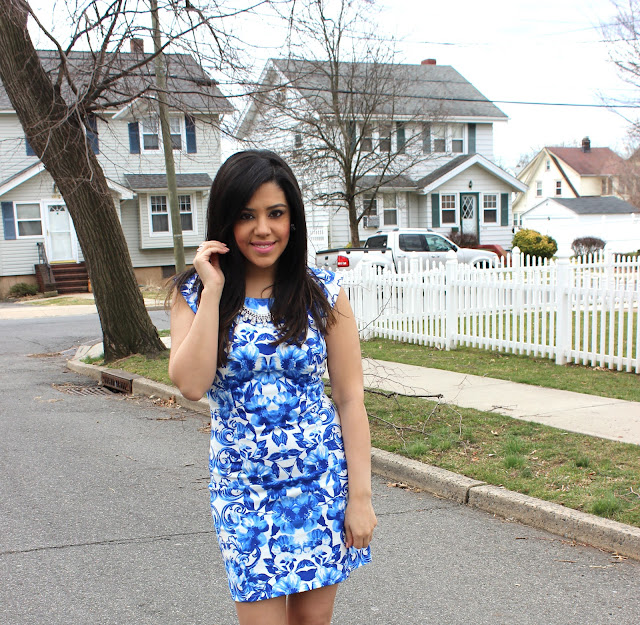 I've been loving blue lately and never used to wear much of it before. I thought this floral shift dress was perfect for the occasion. I love the color and print and it fits me like a glove. These shoes are obviously a perfect match as well. I have to say that Forever21 has definitely stepped up their shoe game over the past few years. I always find great pairs there. My favorite part of this outfit is this gorgeous necklace. It also comes with matching earrings. I have seriously been looking everywhere for something similar to this but I was not having any luck. It's such a great statement necklace with so much versatility because it would look just as good with a graphic tee to dress it up. I will be doing a giveaway later this month with Erika from Lola Blue so stay tuned! She has amazing pieces on her site.